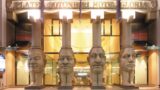 続いて、写真左側に見える青い柱は、ウィーンのオペラハウスでも使われている特殊技法を用いたもので、当時の価格で1本1億円もかかっているんだそうです。